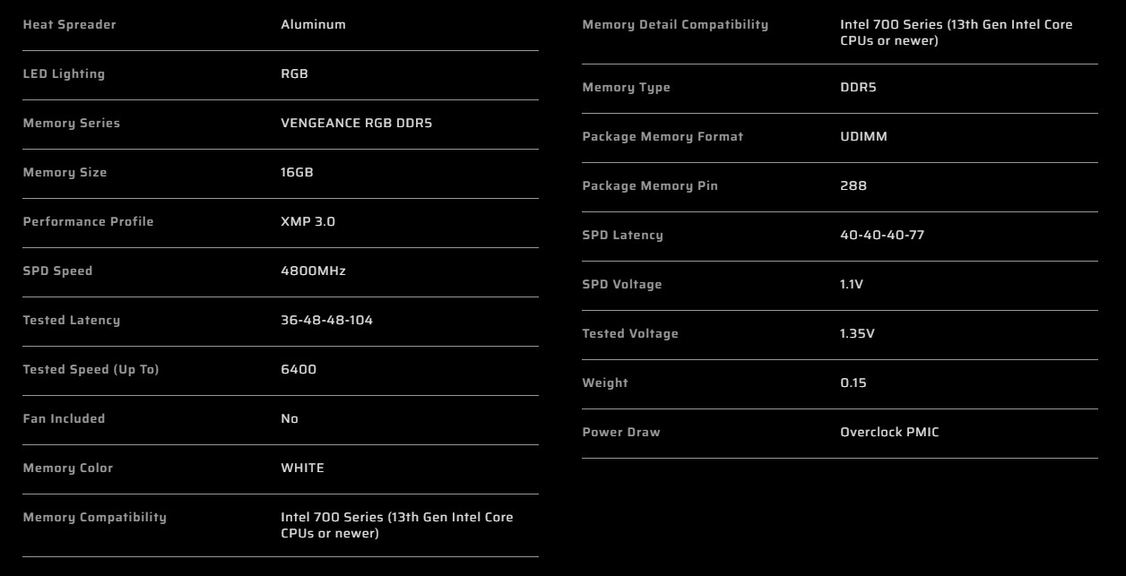 Corsair VENGEANCE RGB PRO DDR5-6400MHz 32GB (16GB x2) CL36 WHITE(CMH32GX5M2B6400C36W)