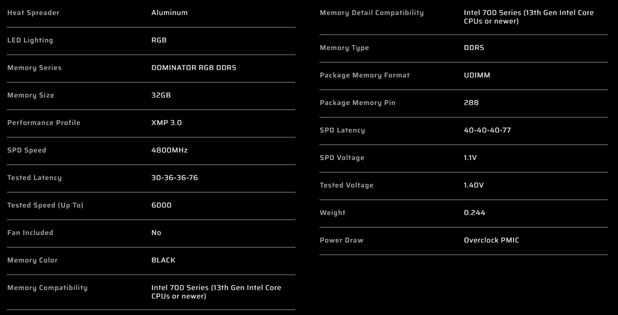 Corsair DOMINATOR PLATINUM RGB DDR5-6000MHz 64GB (32GB x2) CL30 BLACK(CMT64GX5M2B6000C30)