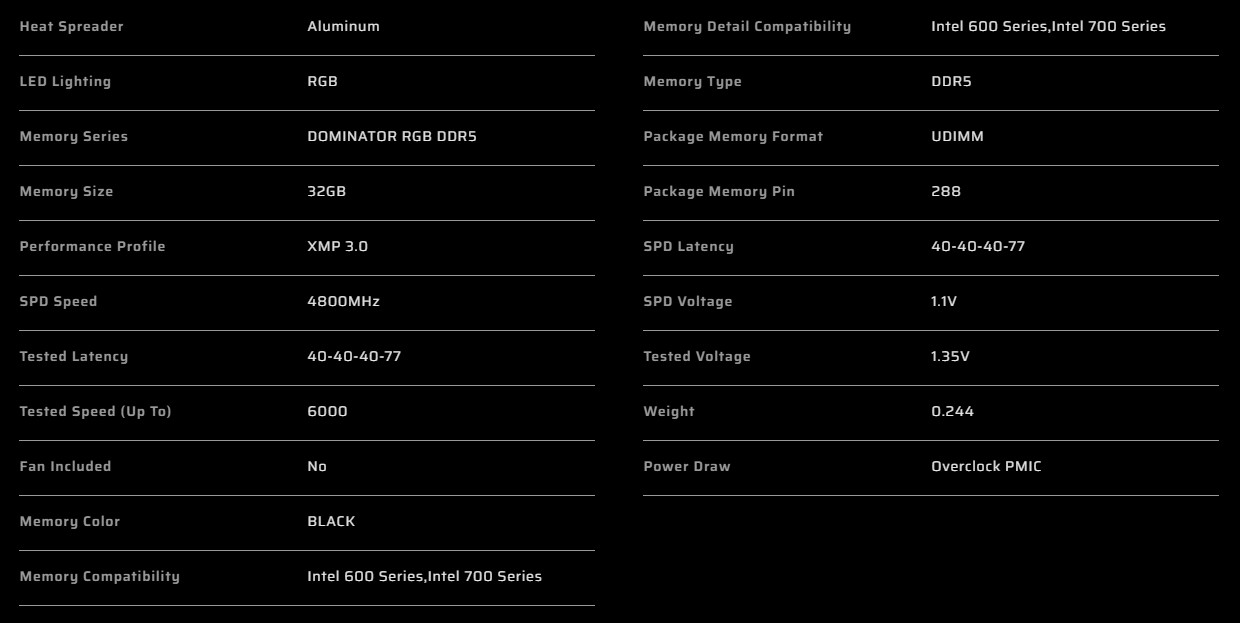 Corsair DOMINATOR PLATINUM RGB DDR5-6000MHz 64GB (32GB x2) CL40 BLACK(CMT64GX5M2B6000C40)