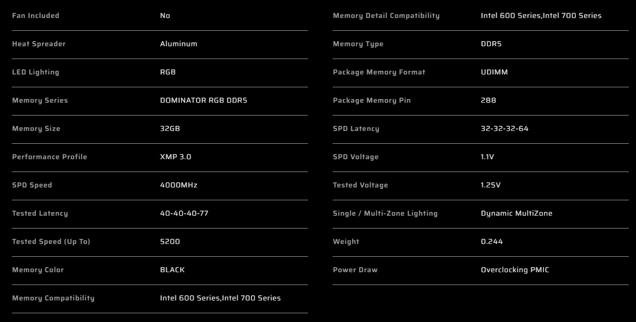 Corsair DOMINATOR PLATINUM RGB DDR5-5200MHz 64GB (32GB x2) CL40 BLACK(CMT64GX5M2B5200C40)