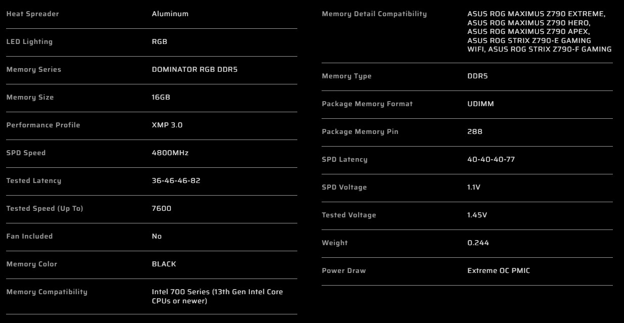 Corsair DOMINATOR PLATINUM RGB DDR5-7600MHz 32GB (16GB x2) CL36 BLACK(CMT32GX5M2X7600C36)