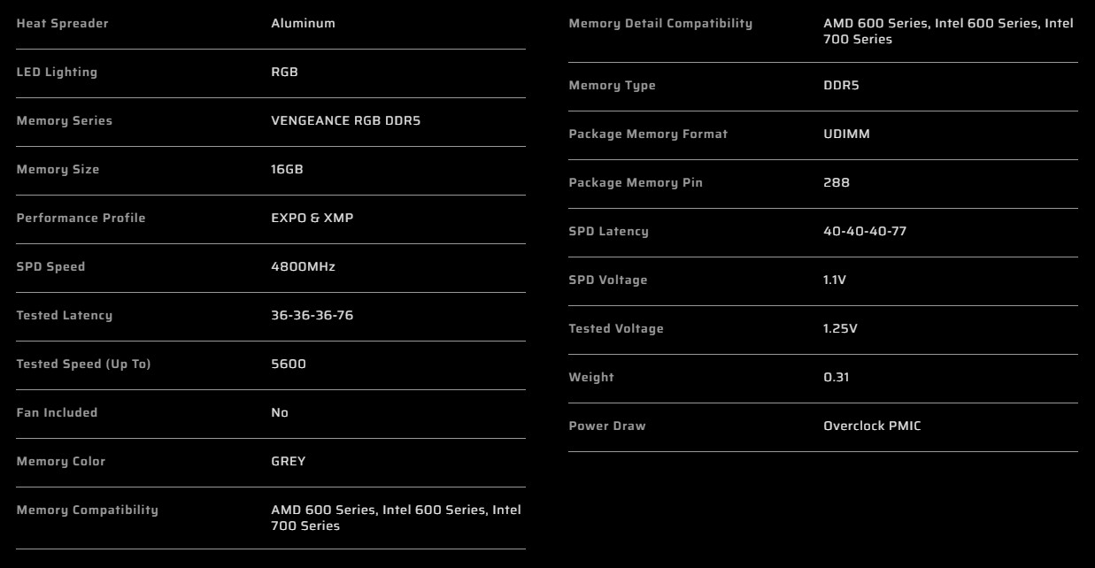 Corsair VENGEANCE RGB PRO DDR5-5600MHz 64GB (16GB x4) CL36 FOR AMD(CMH64GX5M4B5600Z36)