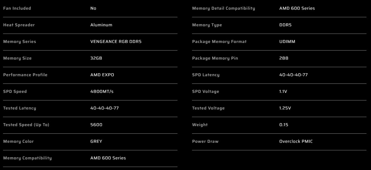 Corsair VENGEANCE RGB PRO DDR5-5600MHz 64GB (32GB x2) CL40 FOR AMD(CMH64GX5M2B5600Z40K)