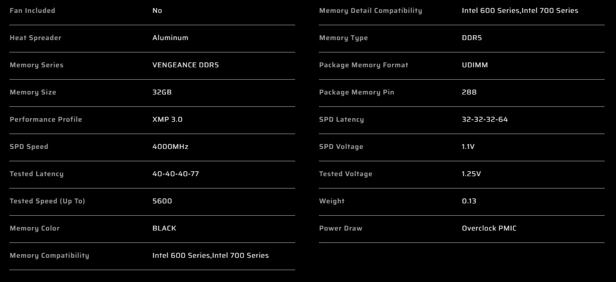 Corsair VENGEANCE RGB PRO DDR5-5600MHz 64GB (32GB x2) CL40 BLACK(CMH64GX5M2B5600C40)
