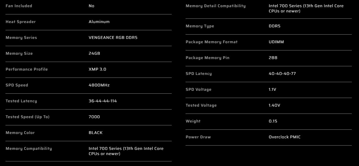 Corsair VENGEANCE RGB PRO DDR5-7000MHz 48GB (24GB x2) CL36 BLACK(CMH48GX5M2B7000C36)