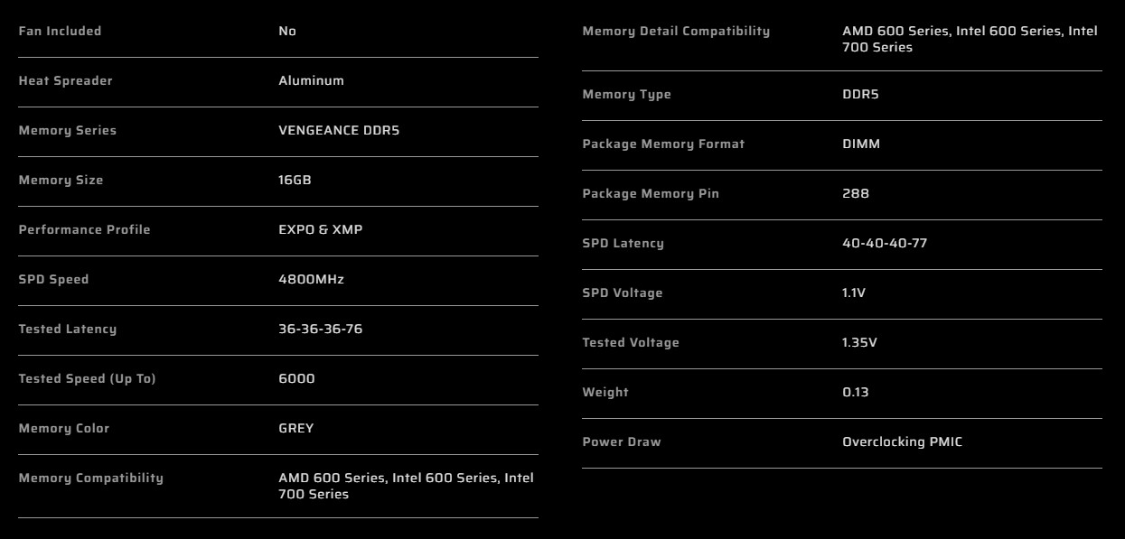 Corsair VENGEANCE LPX DDR5-6000MHz 32GB (16GB x2) CL36 FOR AMD(CMK32GX5M2D6000Z36)
