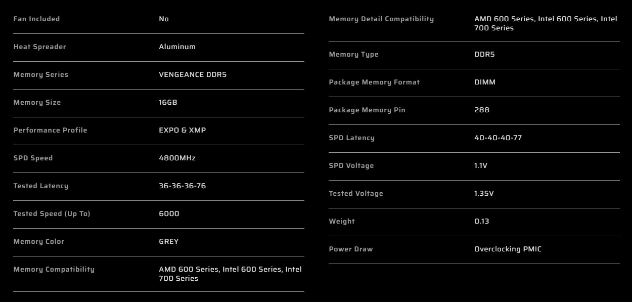 Corsair VENGEANCE LPX DDR5-6000MHz 32GB (16GB x2) CL36 FOR AMD(CMK32GX5M2E6000Z36)