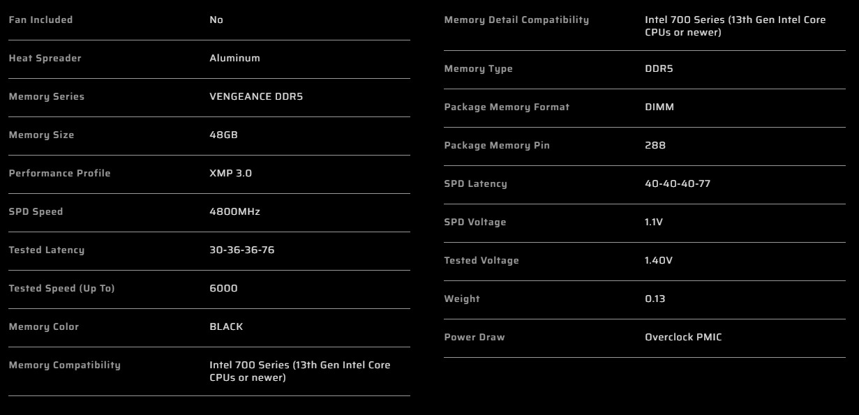 Corsair VENGEANCE LPX DDR5-6000MHz 96GB (48GB x2) CL30 BLACK(CMK96GX5M2B6000C30)
