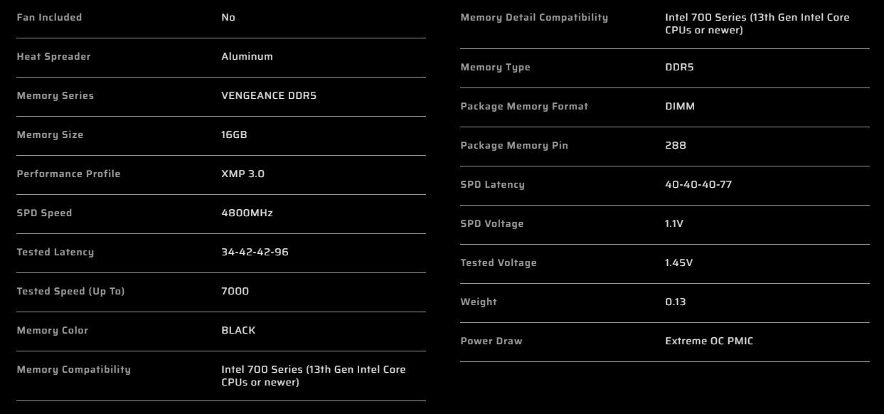 Corsair VENGEANCE LPX DDR5-7000MHz 32GB (16GB x2) CL34 BLACK(CMK32GX5M2X7000C34)