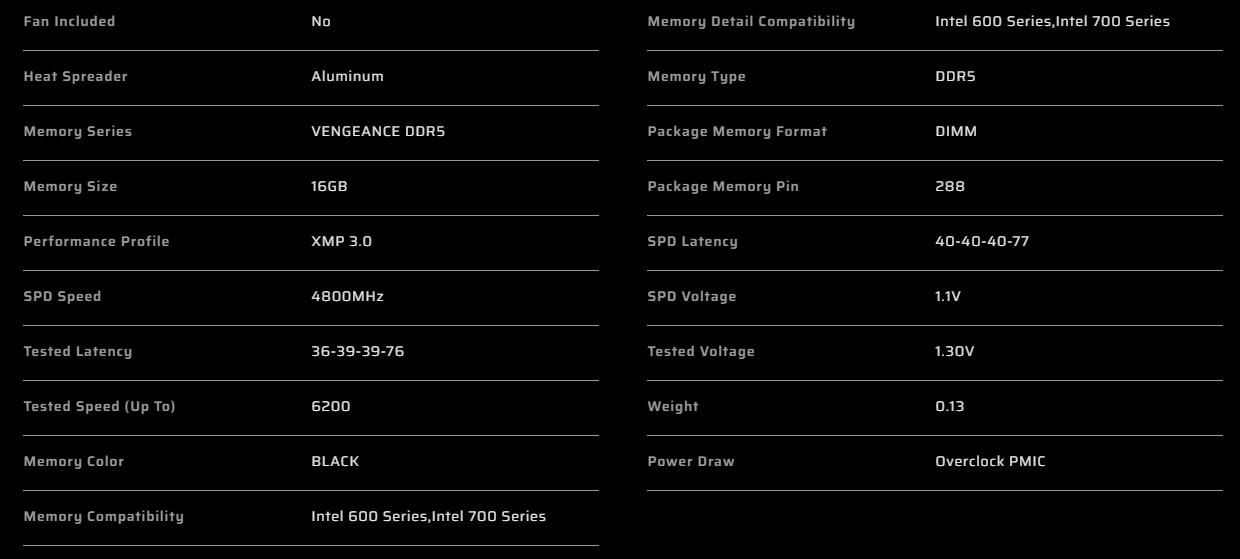 Corsair VENGEANCE LPX DDR5-6200MHz 32GB (16GB x2) CL36 BLACK(CMK32GX5M2B6200C36)