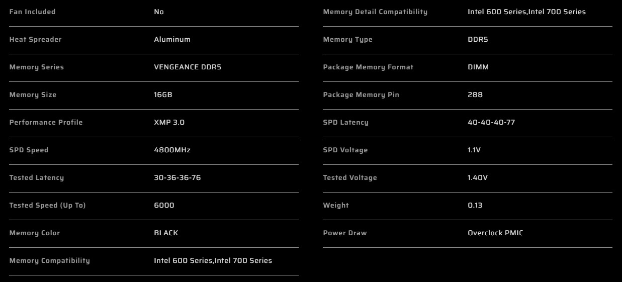 Corsair VENGEANCE LPX DDR5-6000MHz 32GB (16GB x2) CL30 BLACK(CMK32GX5M2B6000C30)