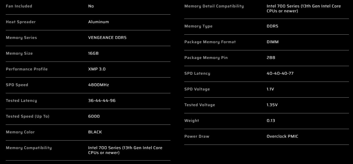 Corsair VENGEANCE LPX DDR5-6000MHz 32GB (16GB x2) CL36 BLACK(CMK32GX5M2E6000C36)