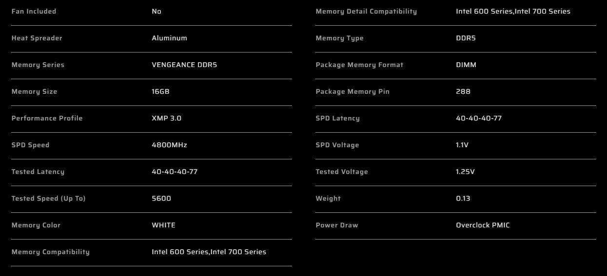 Corsair VENGEANCE LPX DDR5-5600MHz 32GB (16GB x2) CL40 WHITE(CMK32GX5M2B5600C40W)