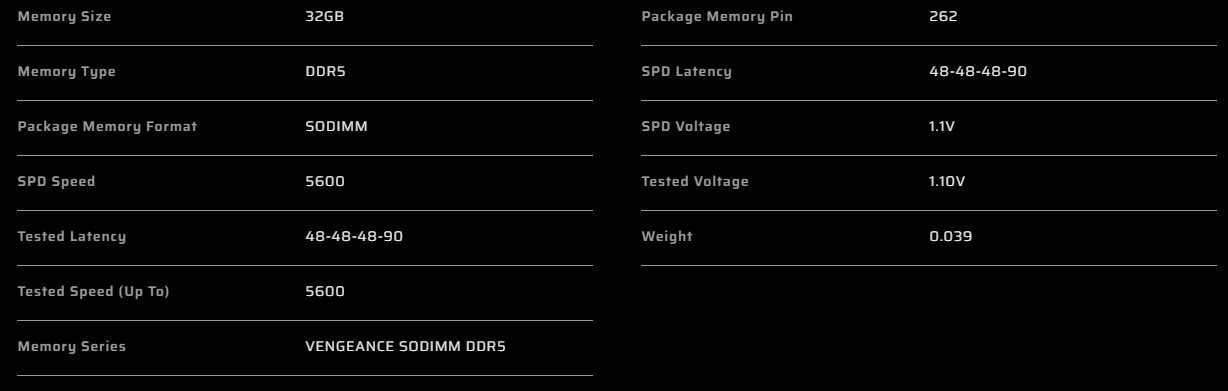 Corsair VENGEANCE Series SODIMM DDR5-5600MHz 64GB (32GB x2) CL48(CMSX64GX5M2A5600C48)