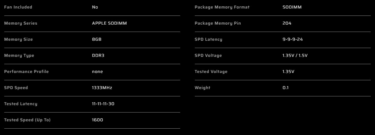 Corsair Apple Qualified SODIMM DDR3-1600MHz 8GB (8GB x1) CL11(CMSA8GX3M1A1600C11)