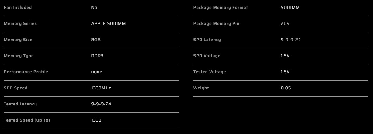 Corsair Apple Qualified SODIMM DDR3-1333MHz 8GB (8GB x1) CL9(CMSA8GX3M1A1333C9)