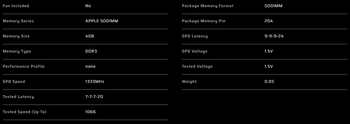 Corsair Apple Qualified SODIMM DDR3-1066MHz 8GB (4GB x2) CL7(CMSA8GX3M2A1066C7)