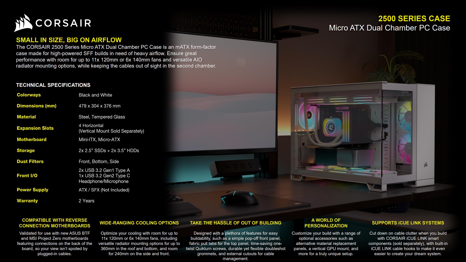 Corsair 2500D Airflow Tempered Glass M-ATX 機箱 (支援背插式底板)(黑色-CC-9011263-WW)