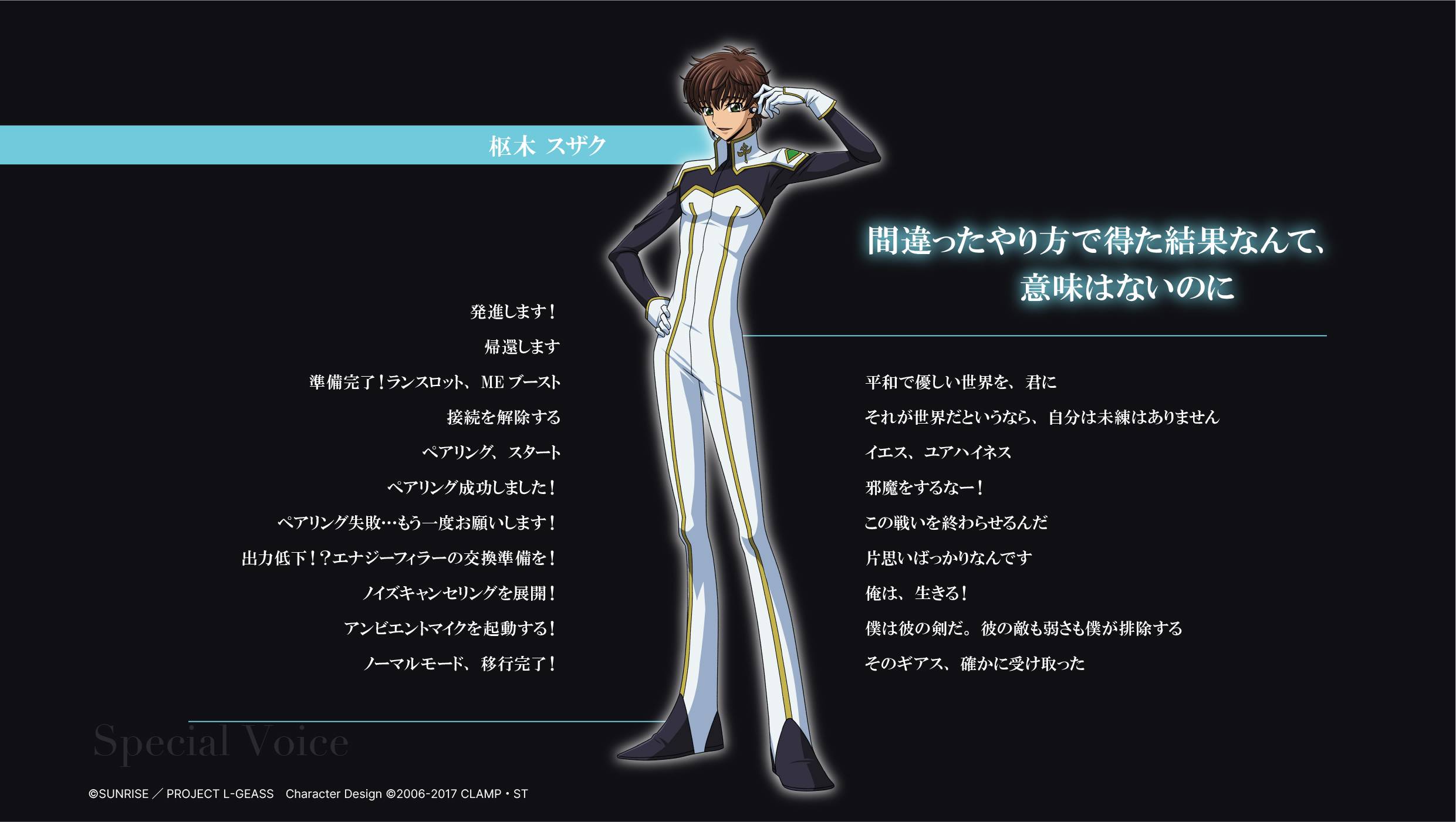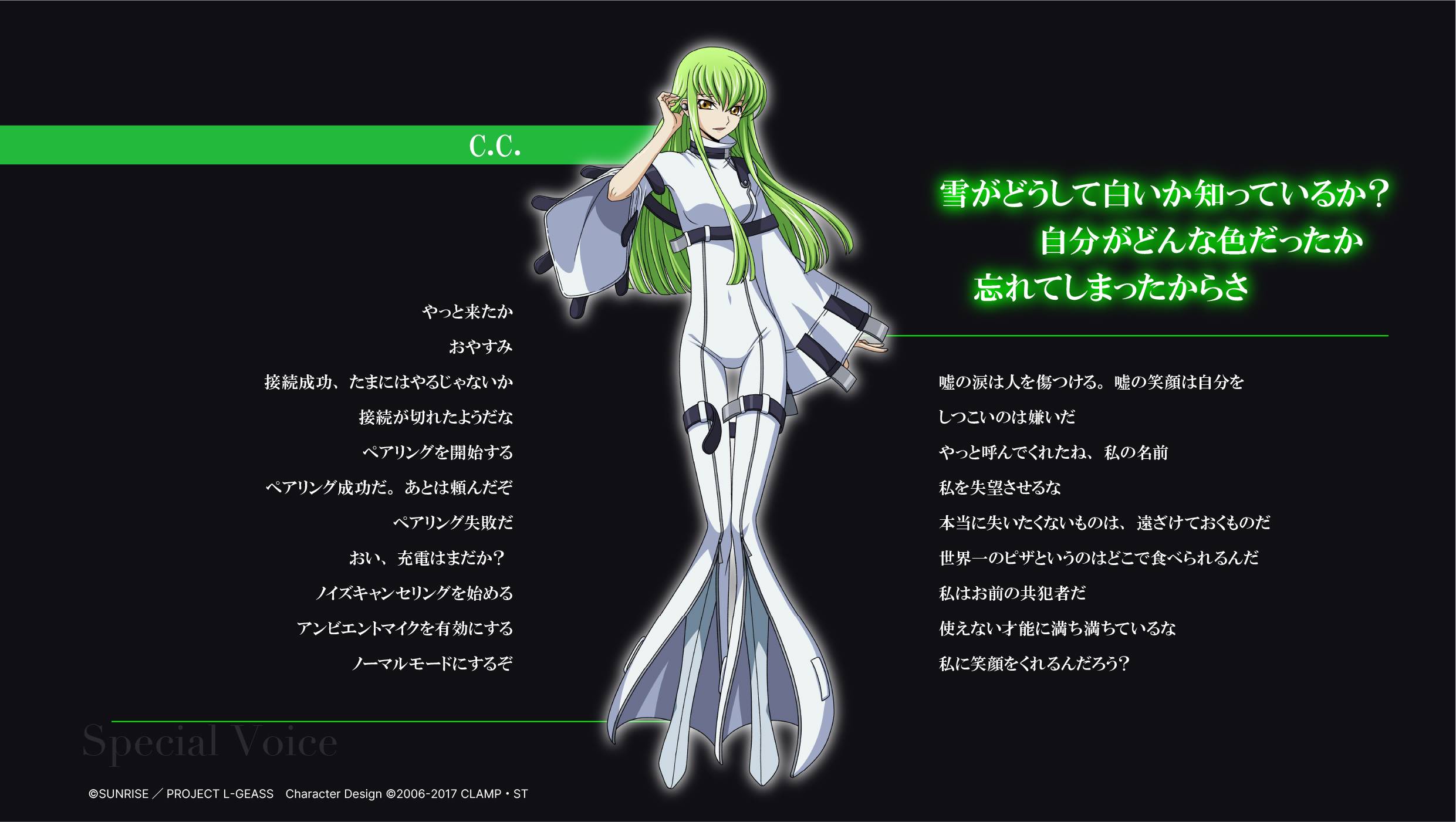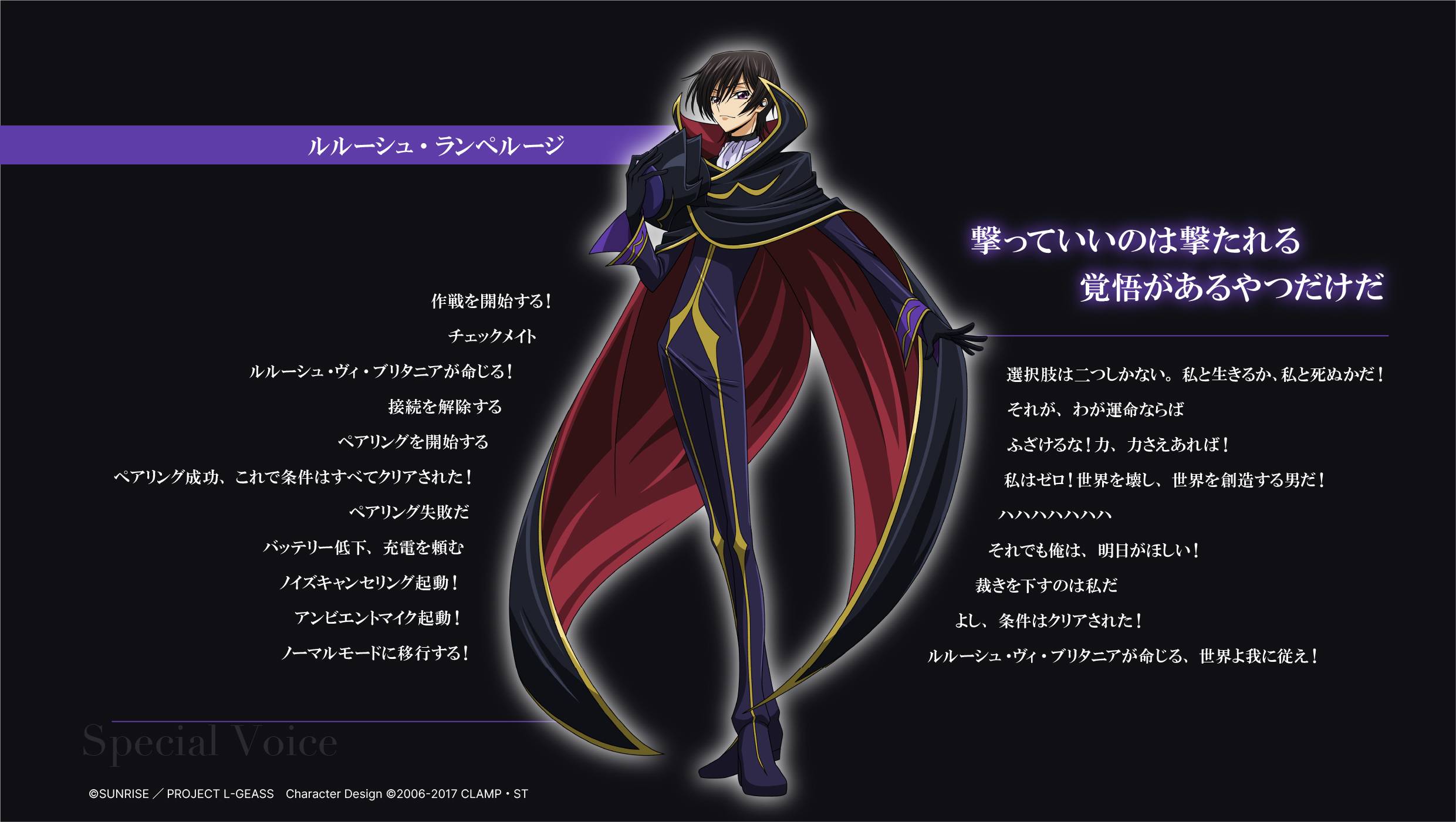 - 推出完全無線耳機,讓您享受《Code Geass:反叛的魯路修》的魅力,超過 150 種全新錄製聲音和 7 種模式!