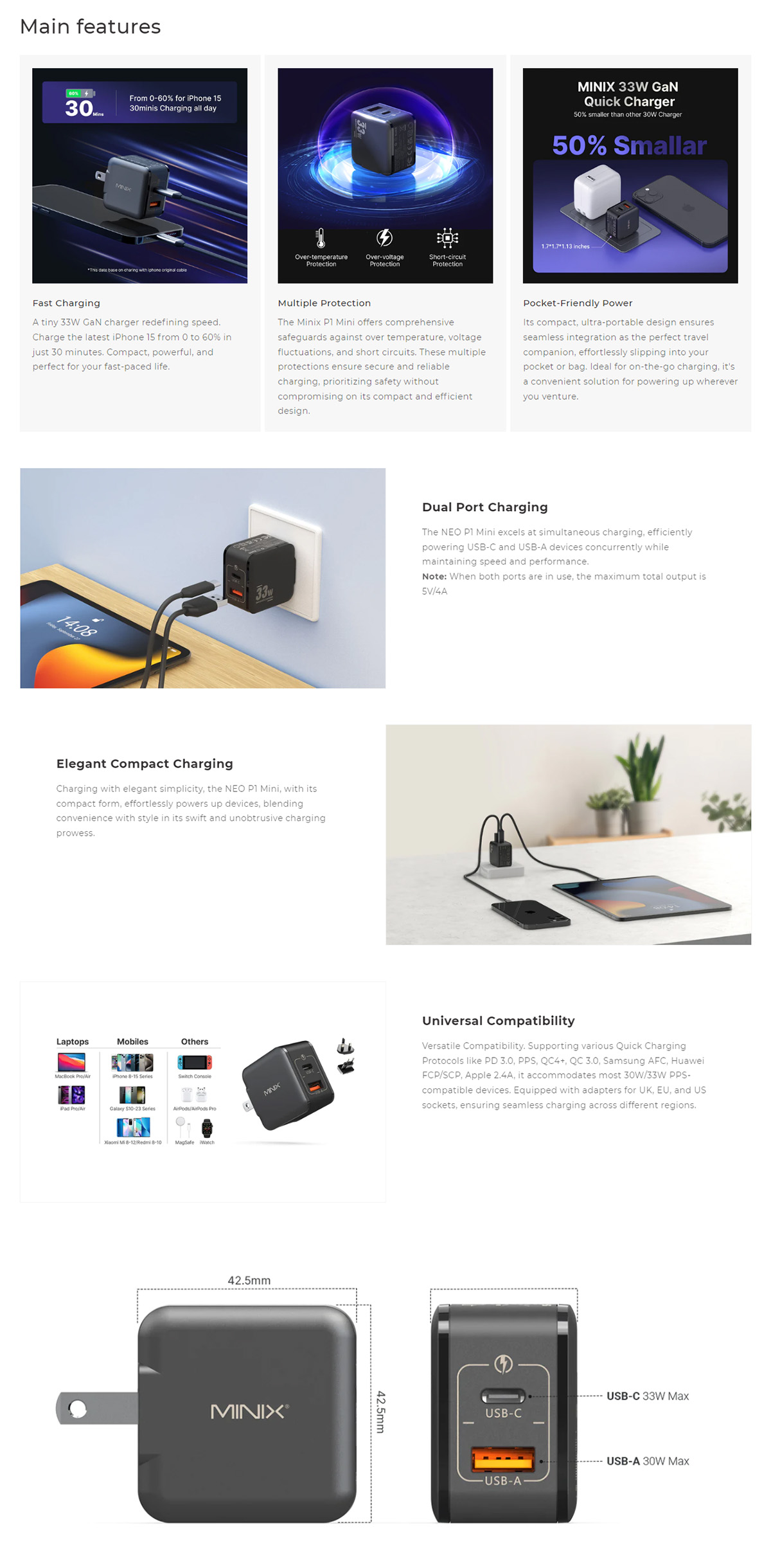 - Minix P1 Mini 集高效、安全和便攜性於一身,無論您走到哪裡,都能重新定義充電體驗。