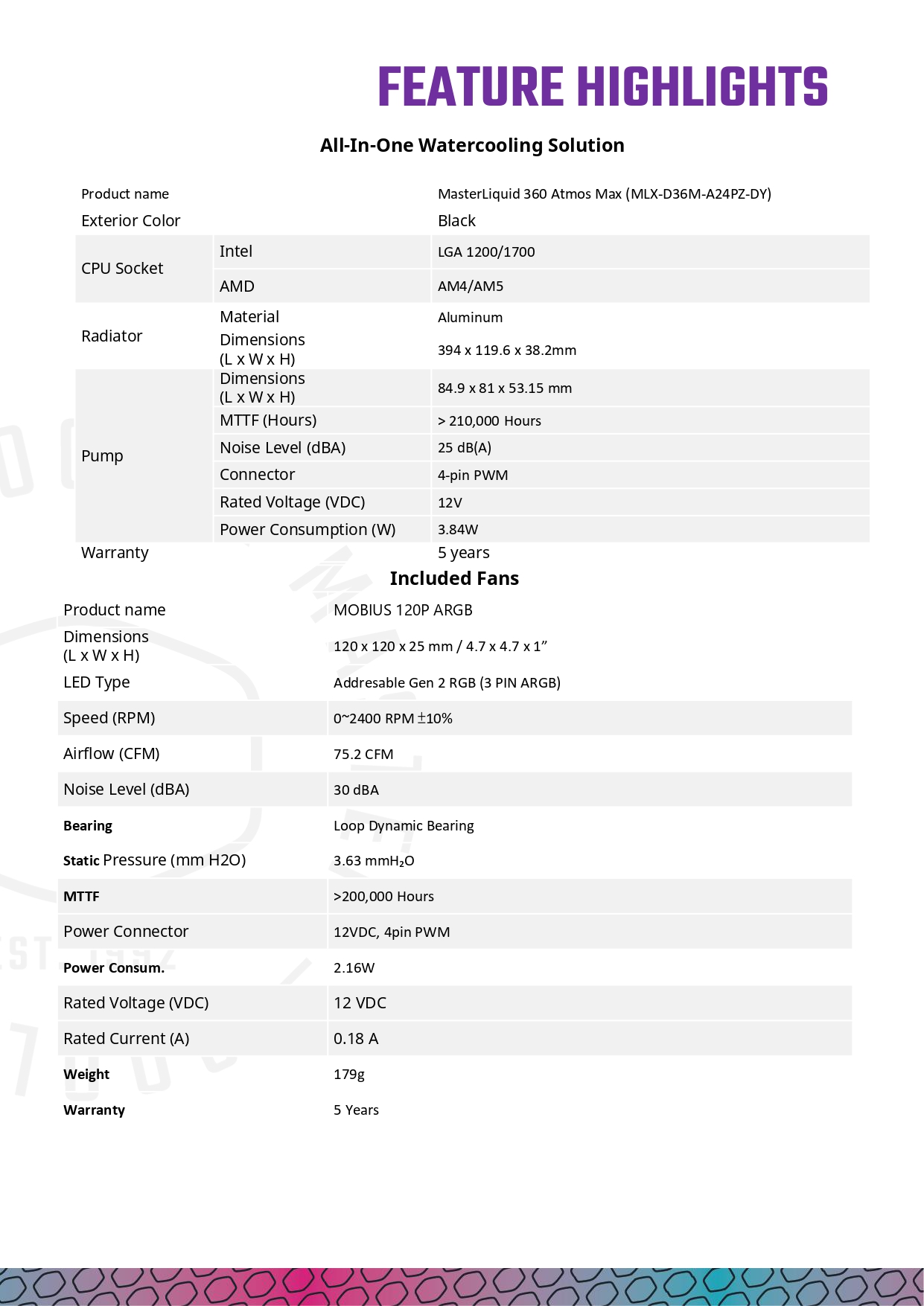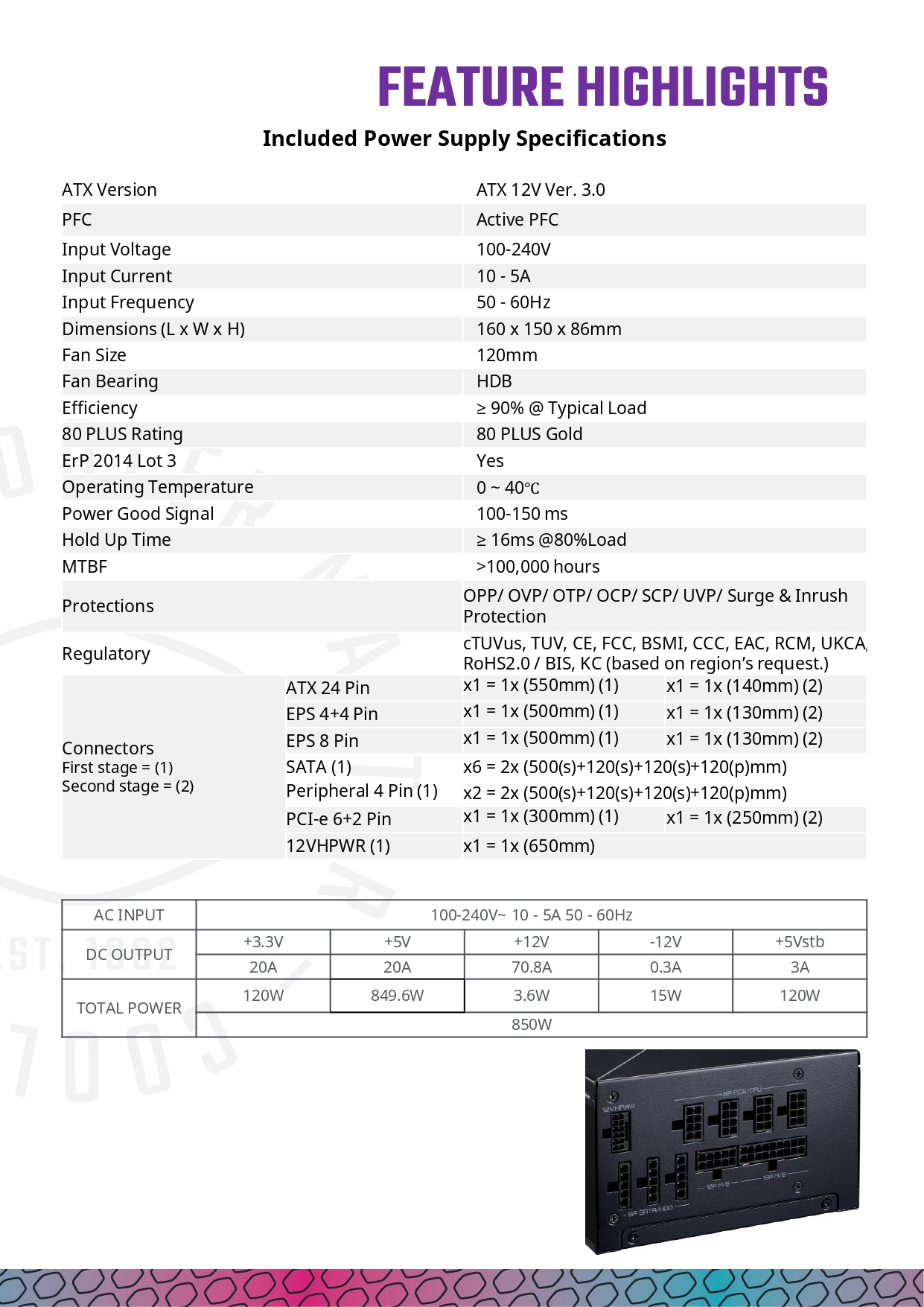 預裝Master Liquid 360 Atmos Max 水冷散熱器,GXII Gold 850W ATX 3.0 全模組電源供應器