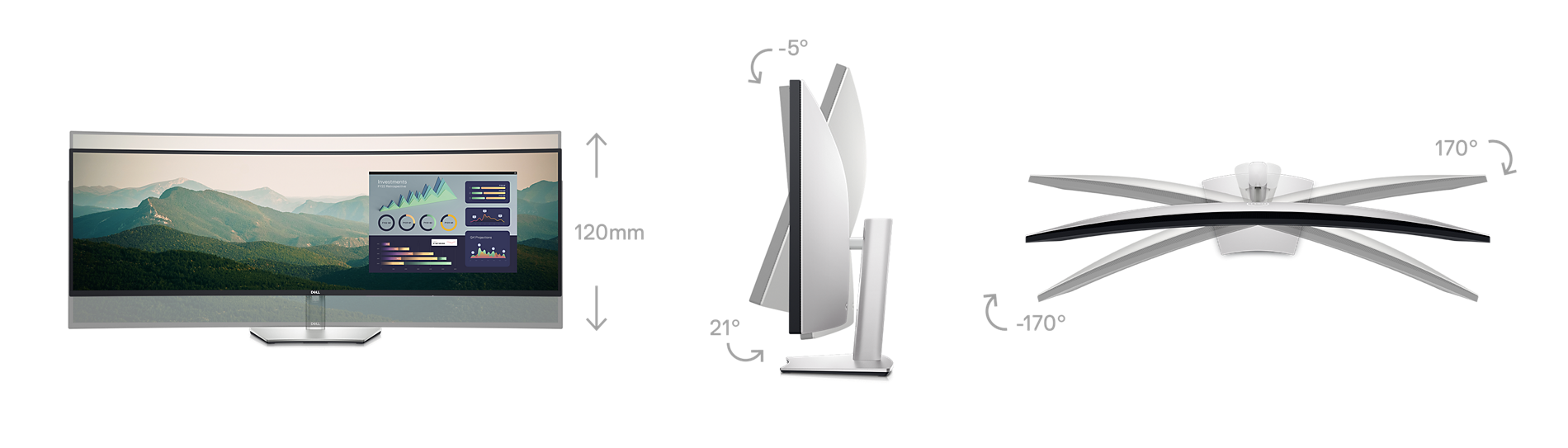 您可傾斜、旋轉及調整顯示器高度,以最適合您的方式舒適工作一整天。
