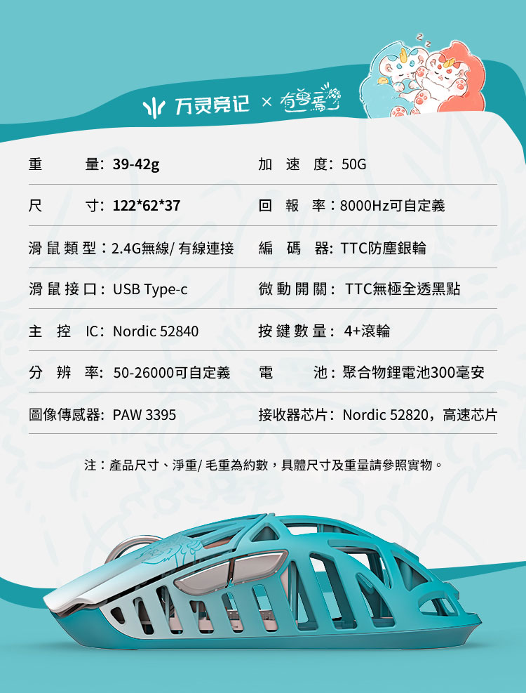 WLMOUSE《有獸焉》聯名版 Beast X 8K 超輕量遊戲滑鼠禮盒裝(天祿)(天祿)