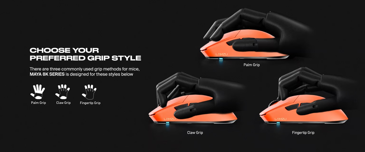 Looking for that perfect small mouse to fit your hands just right? MAYA 8K is for you. Got big hands and need a big mouse to complete the setup? MAYA X 8K is the way to go.