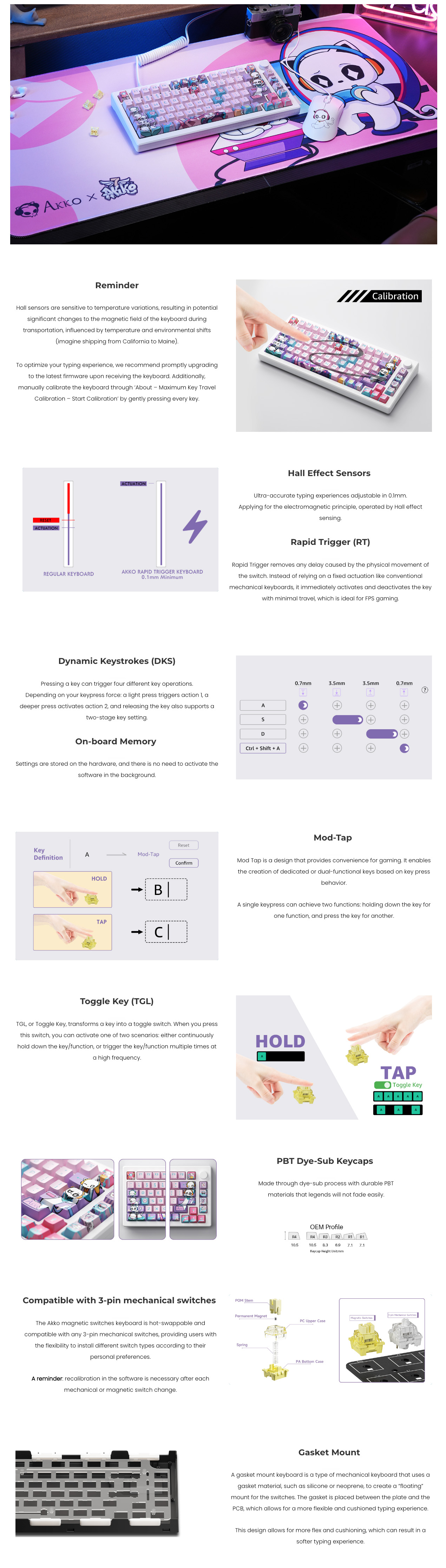 Akko’s 1st keyboard with magnetic switches, and compatible with 3-pin mechanical switches;
