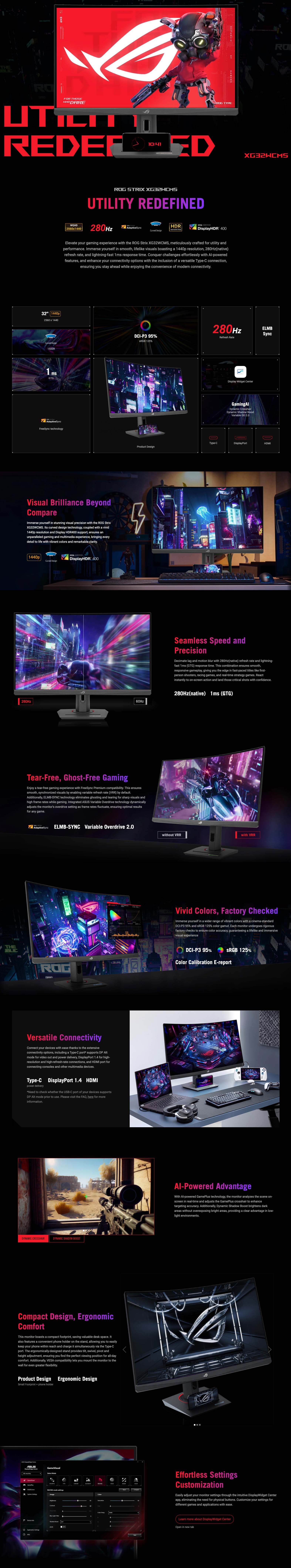 ROG Strix XG32WCMS USB Type-C Gaming Monitor – 32-inch (31.5 viewable) 2560x1440, Curved, 280Hz (Above 144Hz), 1ms (GTG), Fast VA, Extreme Low Motion Blur Sync, USB Type-C, DisplayWidget Center, tripod socket, HDR