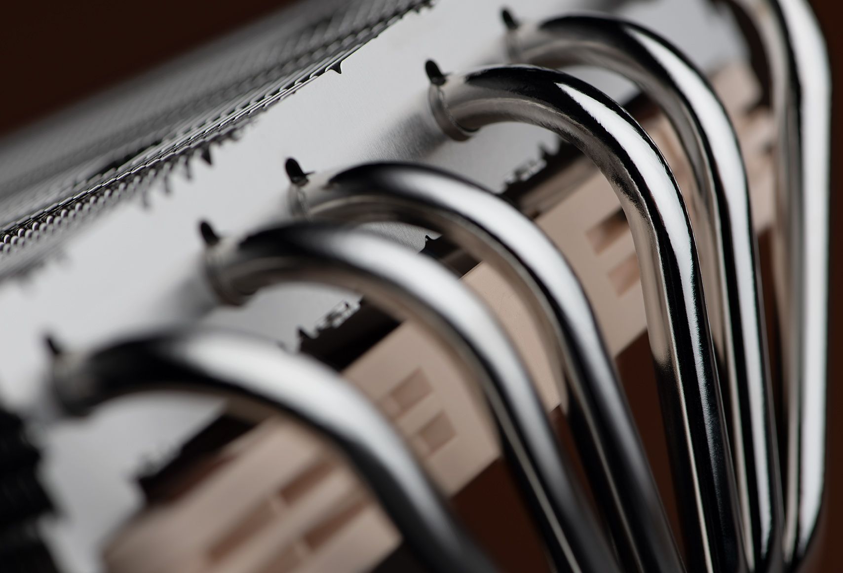• With many heatsinks, the fins are press-fitted to the heatpipes. Due to the different thermal expansion coefficients of copper and aluminium, this fit can loosen over years of thermal cycling, which may lead to reduced performance. By contrast, the NH-L12Sx77’s fins are soldered to the heatpipes in order to guarantee a superior thermal interface that doesn’t deteriorate even after many years of usage.