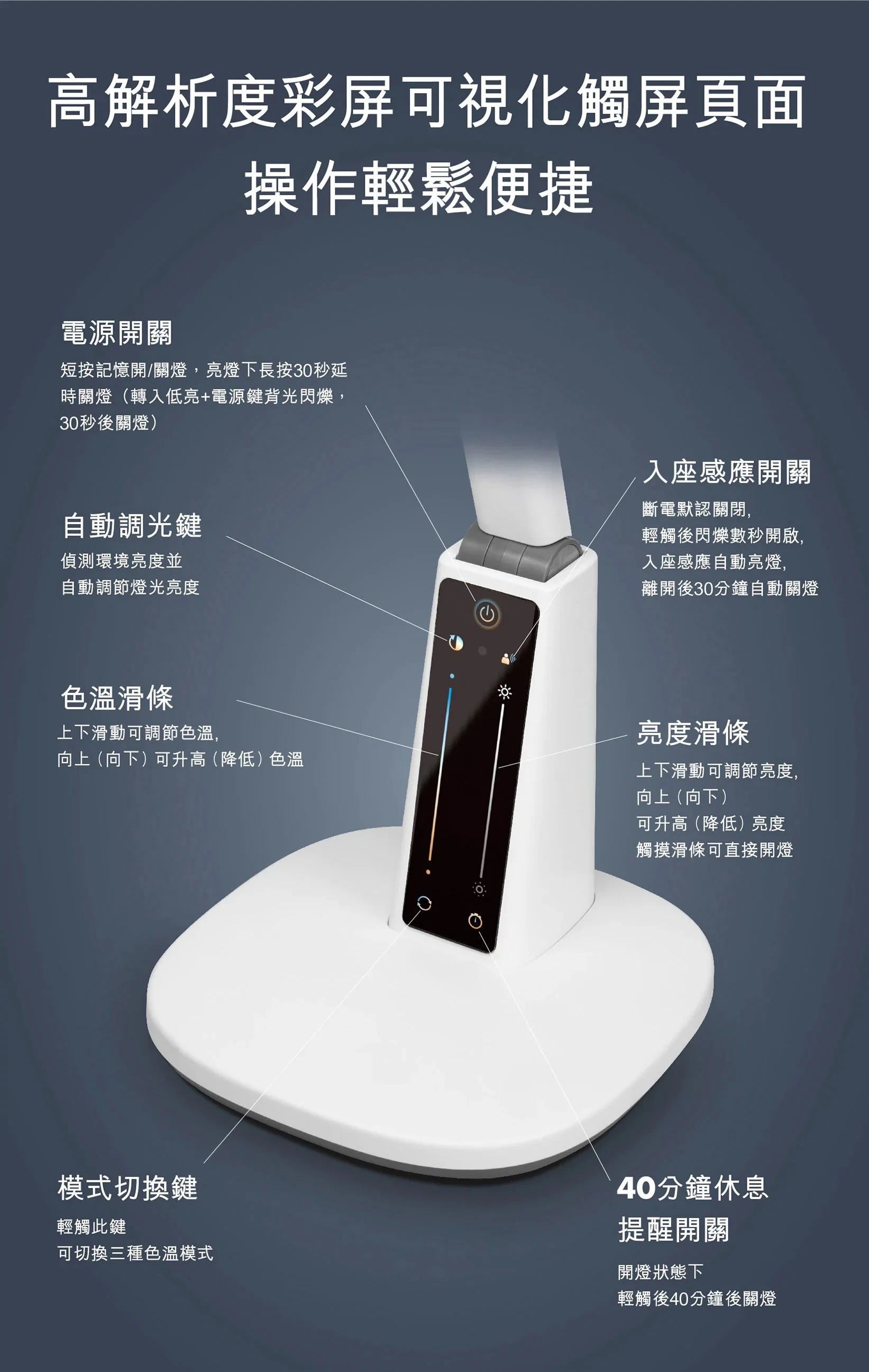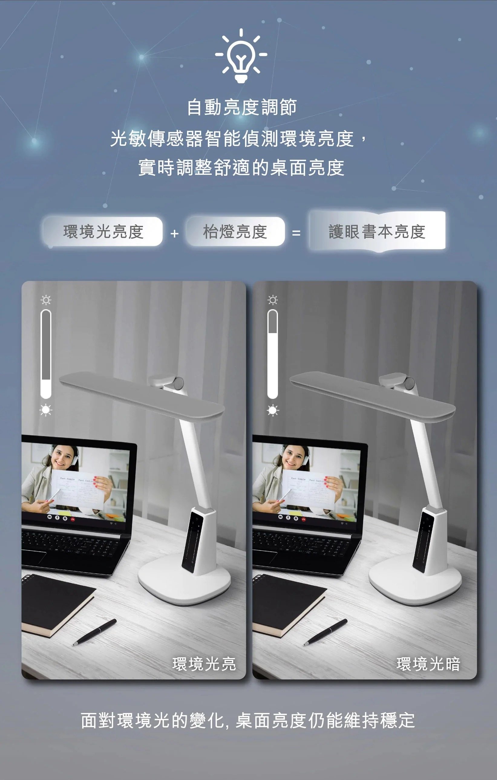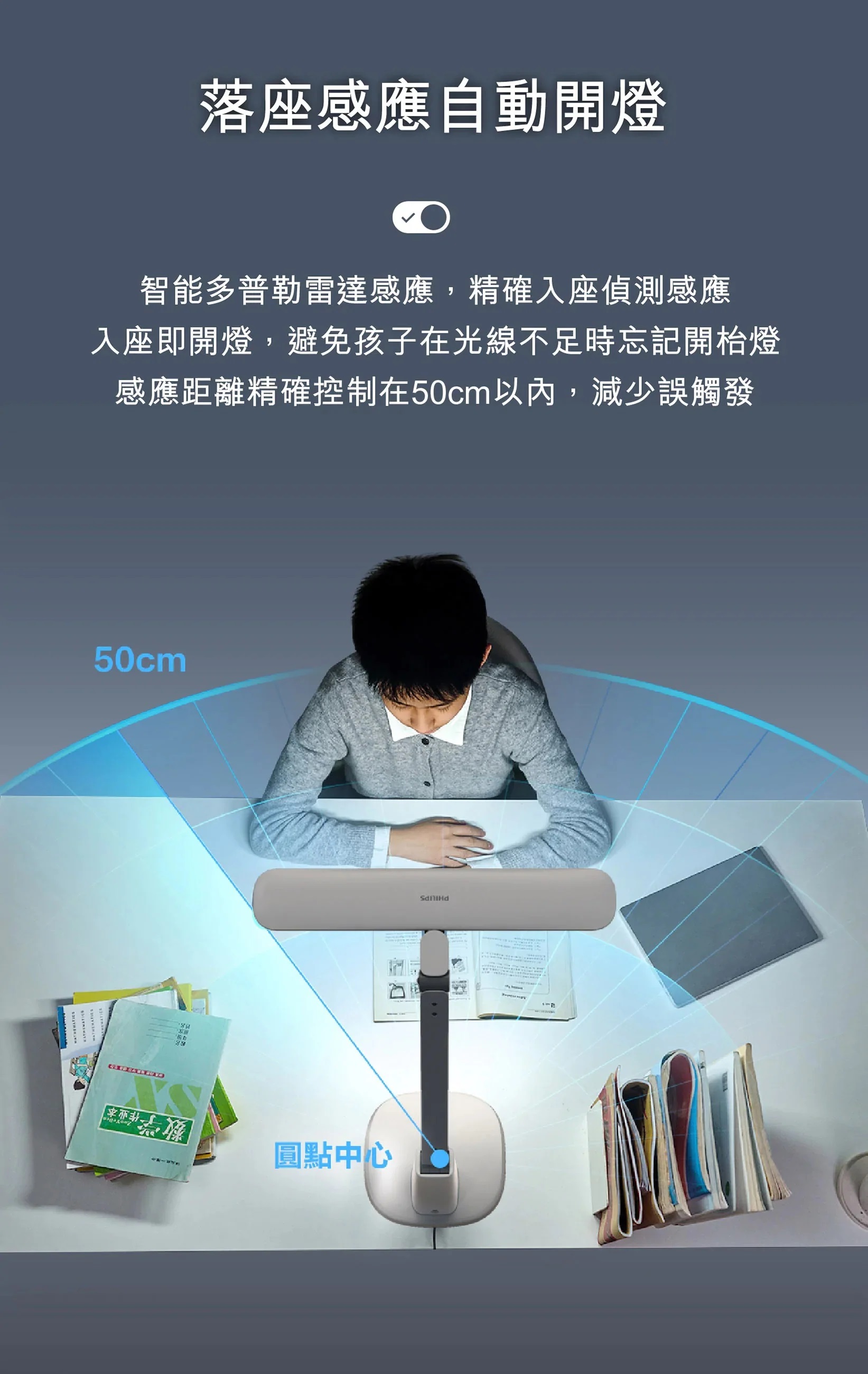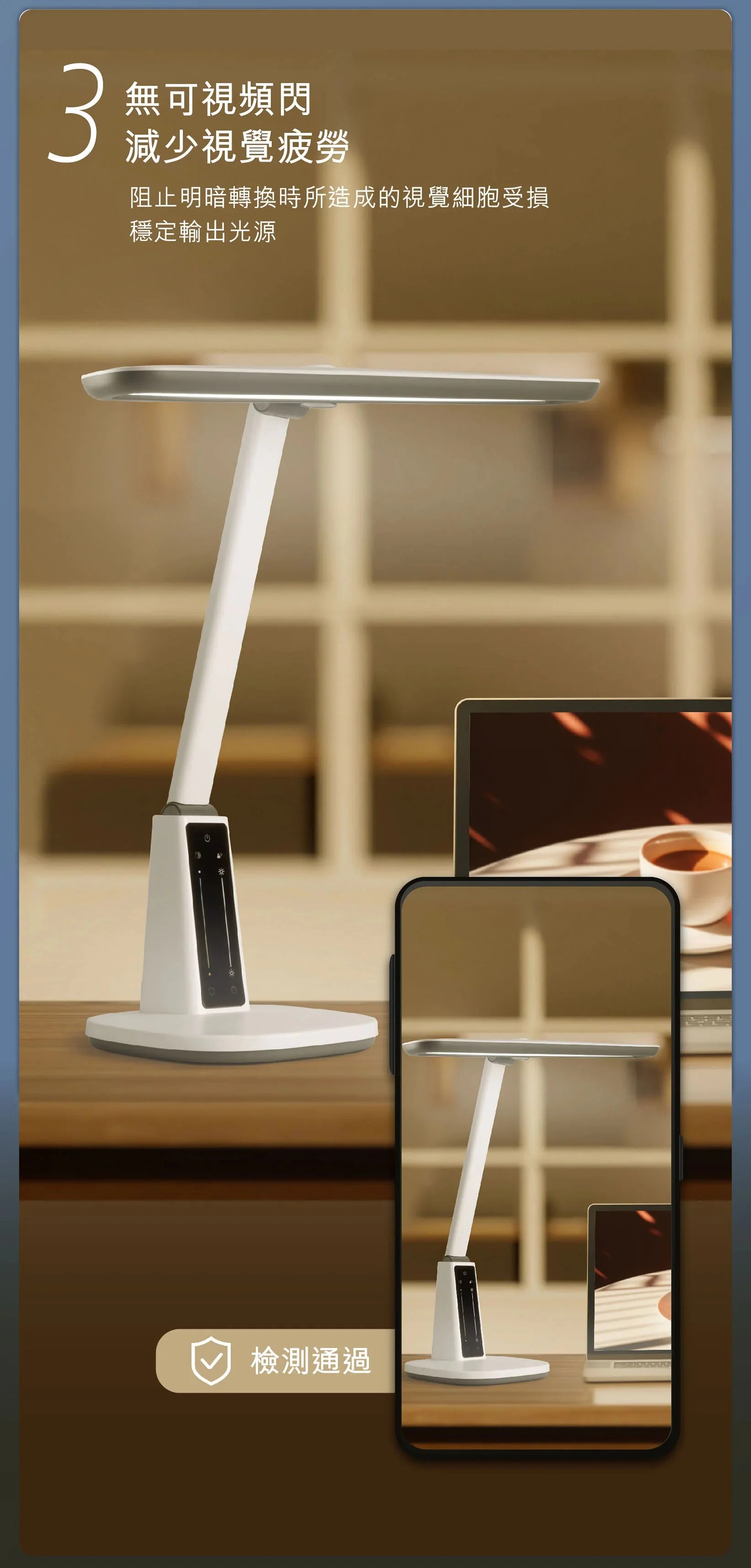 - T 型燈頭採用 二維懸臂結構,適配寬書桌,可將中心區光線平推至孩子眼前。