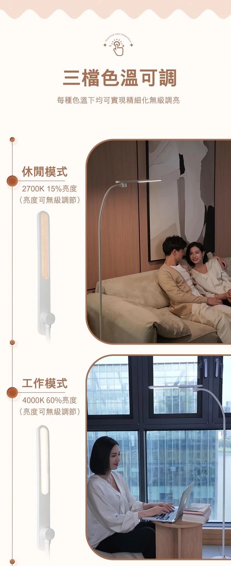 - • 三場景切換 ,每種色溫下,可實現無級調光