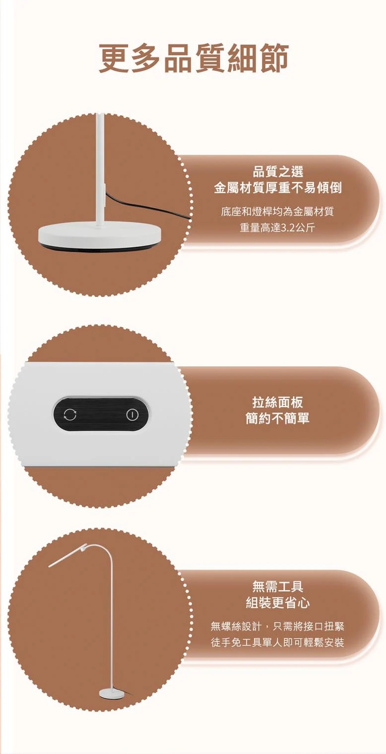 - • 鵝頸軟管 +金屬立桿的實用結構,好安裝省空間,辦公讀寫床頭閱讀都適用