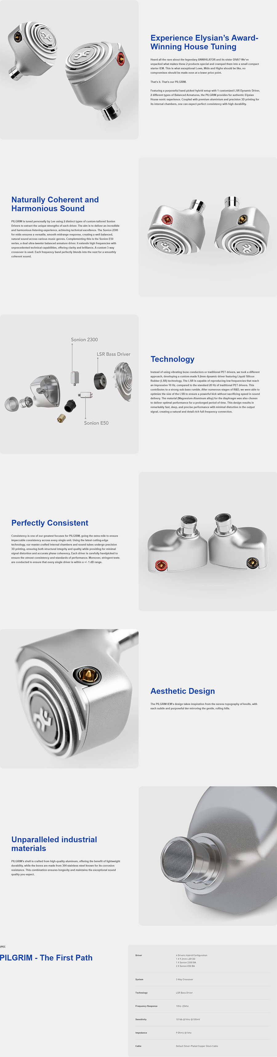 Featuring a purposeful hand-picked hybrid setup with 1 customized LSR Dynamic Driver, 2 different types of Balanced Armatures, the PILGRIM provides for authentic Elysian House sonic experience. Coupled with premium aluminium and precision 3D printing for its internal chambers, one can expect perfect consistency with high durability.