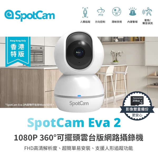 SpotCam EVA2-SD 360°網路雲端攝錄機 (港版限定-雙重視頻保障)