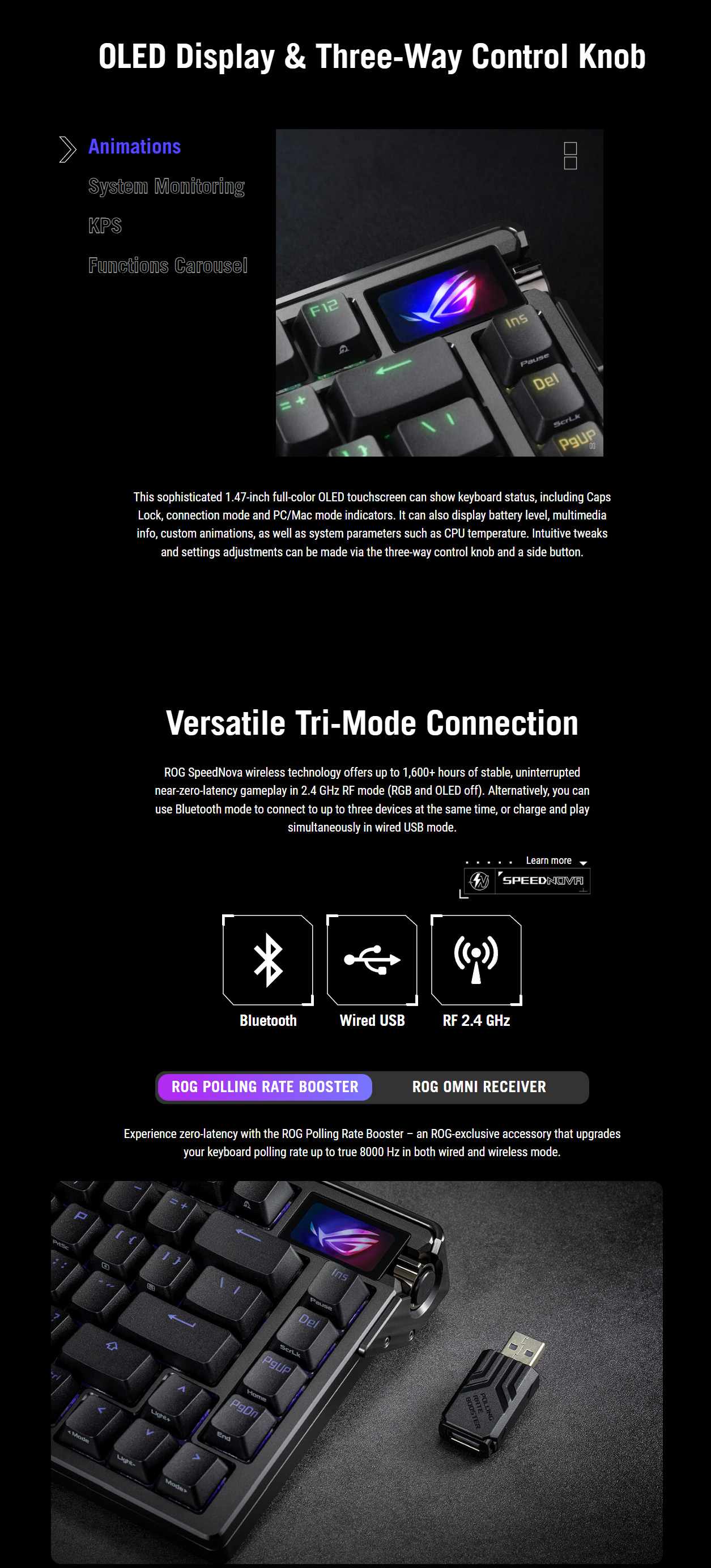 - 全綵 OLED 觸控式螢幕: 檢視系統資訊並自定義鍵盤設定;內建三向旋鈕可進行即時調整。