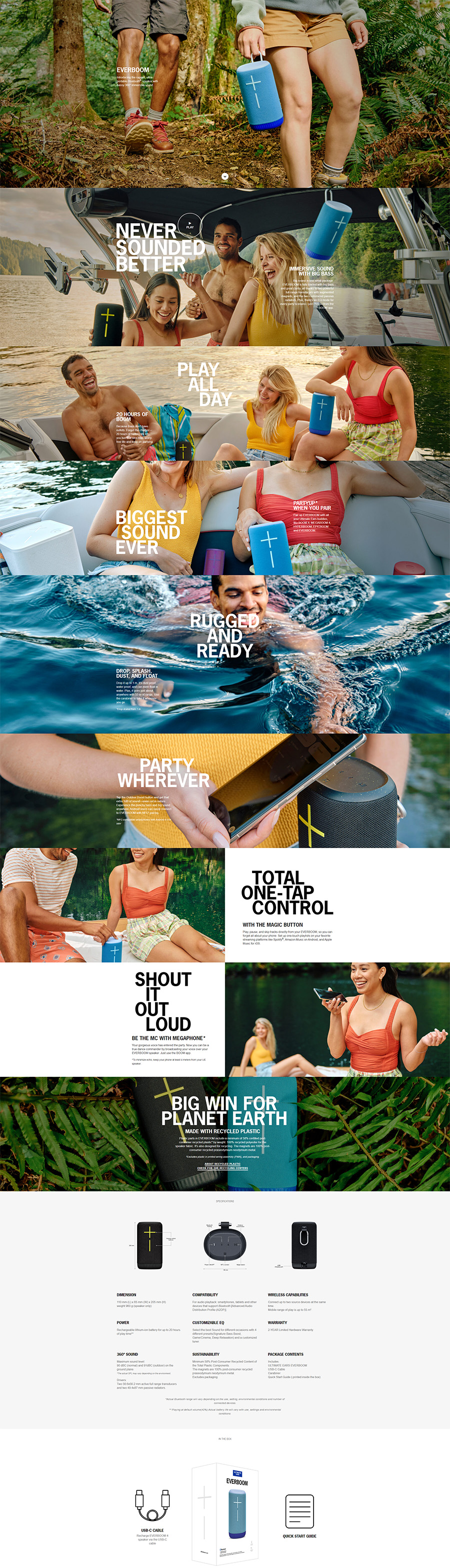 - 將 EVERBOOM 與您的所有 Ultimate Ears 系列產品配對,如: BOOM 4、MEGABOOM 4、HYPERBOOM、EPICBOOM 和 EVERBOOM