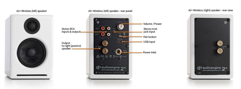 The A2+ premium powered speakers with high-fidelity stereo sound connects to your music in seconds from any app or device. Wired or wireless connections, including USB audio from your computer, aptX Bluetooth from your phone, or good old analog from that vintage turntable or 80’s Sony tape deck.