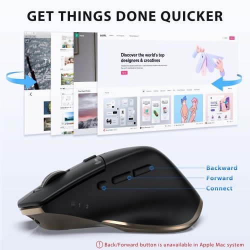 人體工學靜音滑鼠,藍牙+2.4GHz無線, 500mAh可充電電池, 800/1200/1600/2000/2400 dpi光學, 7 鍵按鈕,金屬滾輪, 兼容 Windows、Mac、iOS , iPad, Android, Chrome