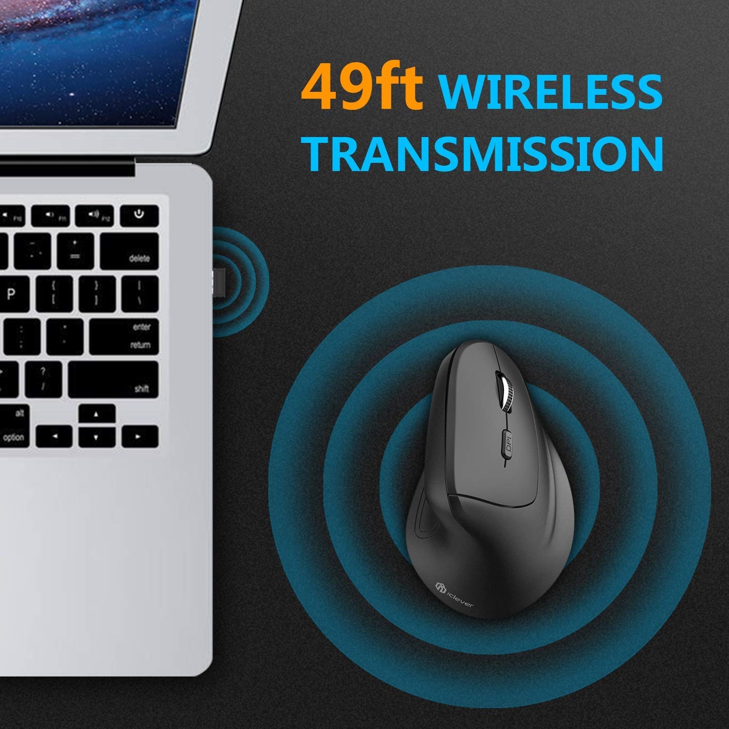 iClever垂直滑鼠-人體工學滑鼠無線6個按鈕,可調節DPI 1000/1600/2000/2400舒適的2.4G光學Ergo滑鼠,適用於筆記本電腦,計算機,台式機,Mac,Windows,Mac OS