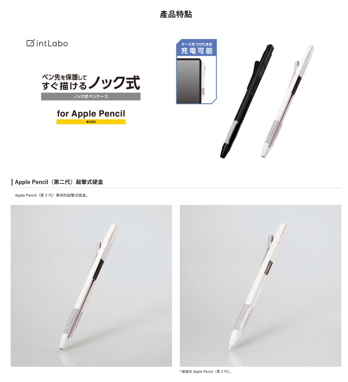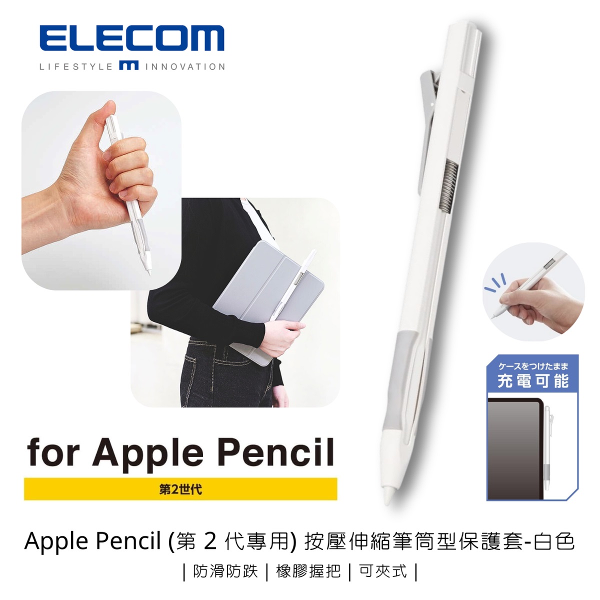 - ■ 僅適用於Apple Pencil(第二代)的按壓伸縮筆筒型保護套。