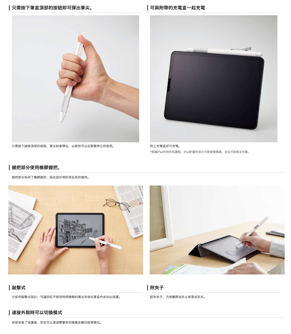 - ■ 即使帶上保護殼,也可以透過雙擊在橡皮擦功能等模式之間切換。
