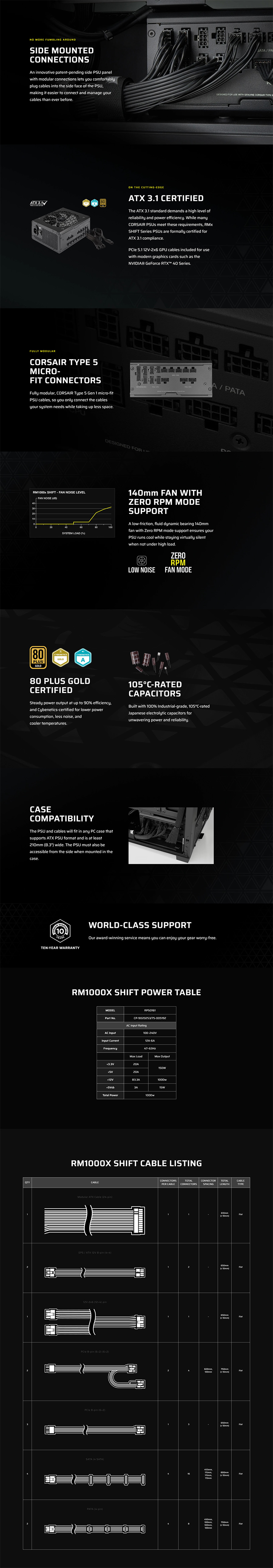 CORSAIR RMx SHIFT Series fully modular power supplies boast a revolutionary patent-pending side cable interface to keep all your connections within easy reach, for exceptionally convenient 80 PLUS Gold efficient power.