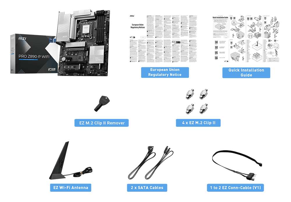 | Storage | 4x M.2 (Qty) M.2_1 Source (From CPU) supports up to PCIe 5.0 x4 , supports 2280/2260 devices M.2_2 Source (From CPU) supports up to PCIe 4.0 x4 , supports 22110/2280/2260 devices M.2_3 Source (From Chipset) supports up to PCIe 4.0 x4 , supports 2280/2260/2242 devices M.2_4 Source (From Chipset) supports up to PCIe 4.0 x4 / SATA mode, supports 2280/2260/2242 devices 4x SATA 6G (Qty) *Please refer to the manual for M.2 SSD heatsink restrictions. |