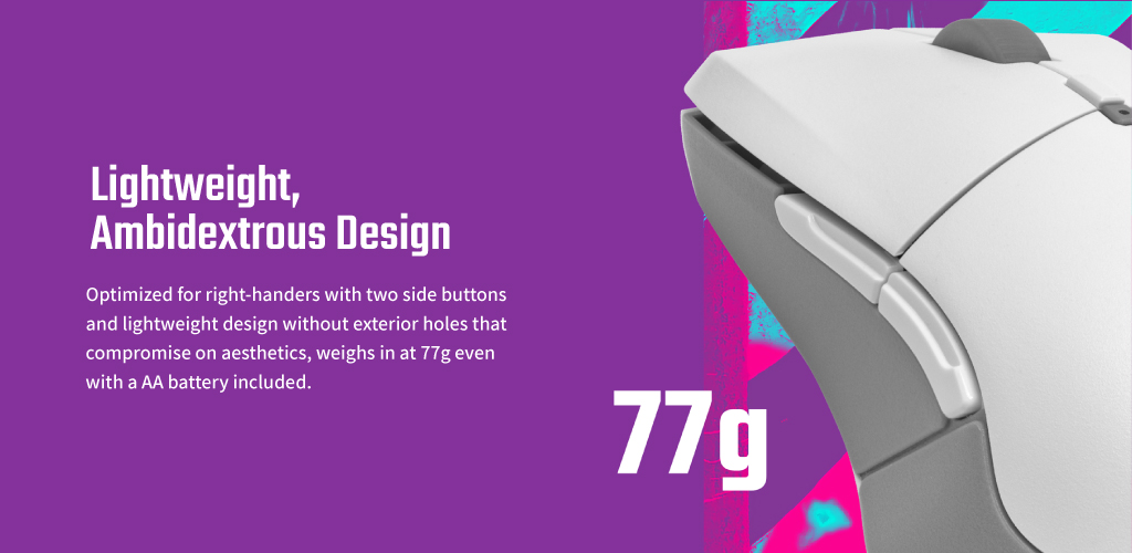 • Mouse Weight:54g / 0.12 lbs (w/o Battery), 77g / 0.17 lbs (w/ AA Battery*1)