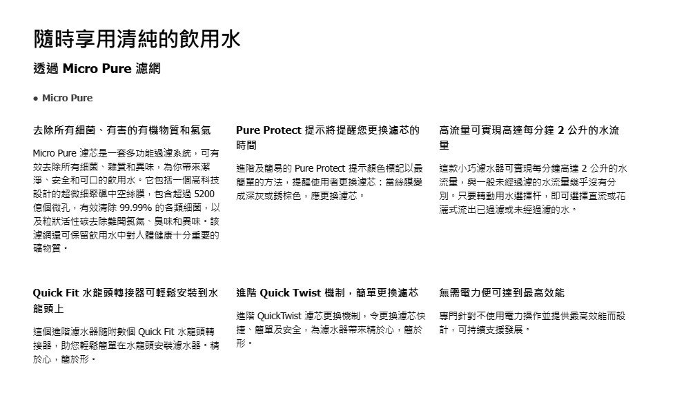 - 8 款 QuickFit 水龍頭轉接器,PureProtect 提示