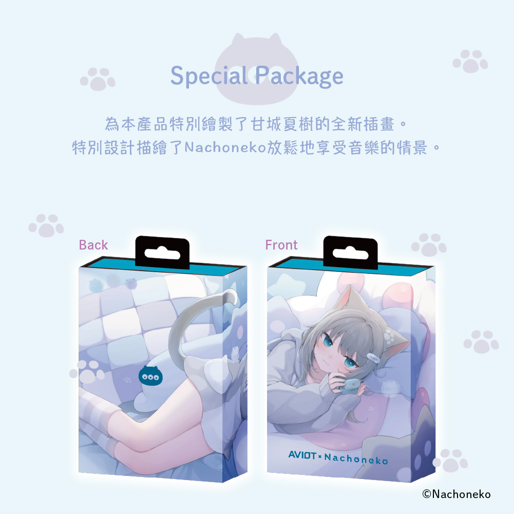 - 不僅是充電盒、耳機本體,甚至是包裝設計,所有細節都由Nachoneko親自監督完成,是fanNYANO粉絲必備的耳機!