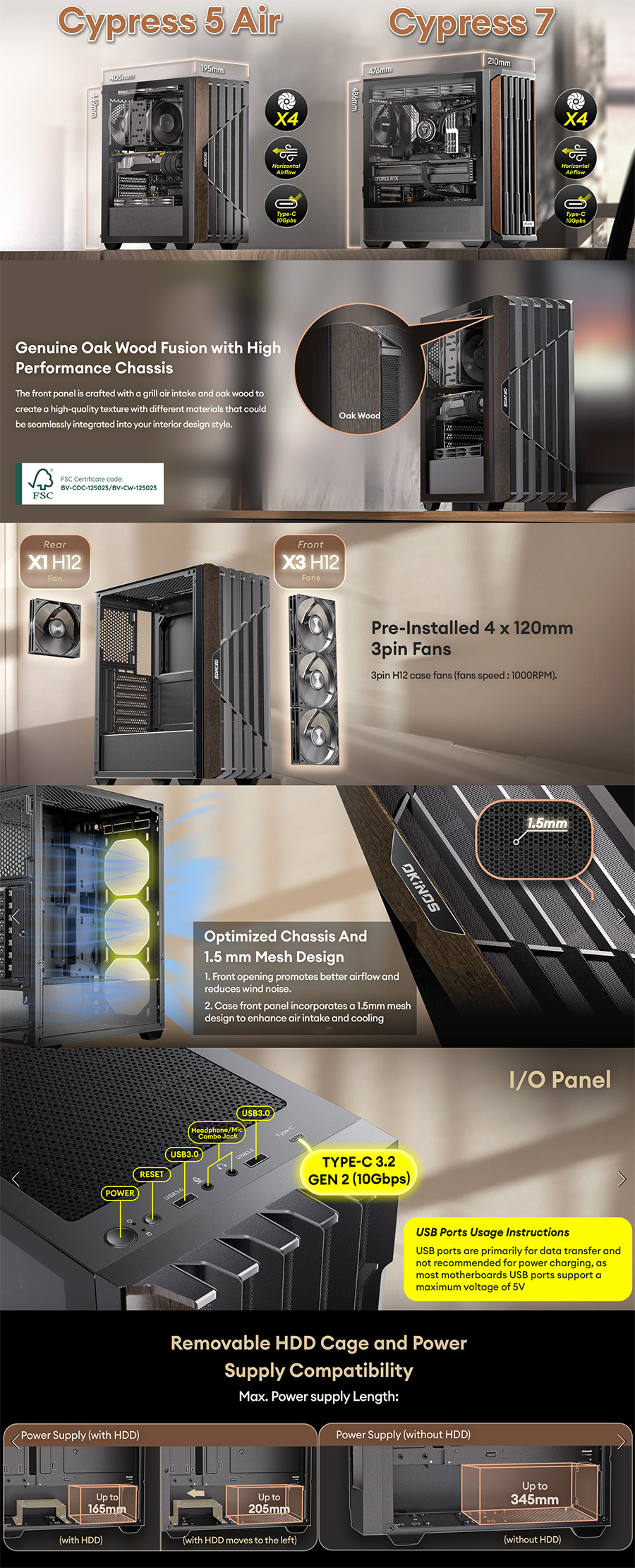 - 【真正的橡木融合與高性能底盤】 前面板採用燒烤進氣口和橡木製成,使用不同的材料創造出高品質的質感,可以無縫融入您的室內設計風格。