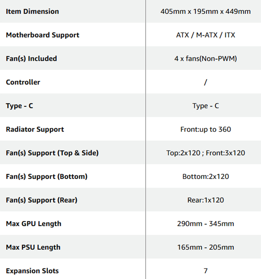 - 【GPU 相容性】最大。 GPU 長度:≤345 公釐(風扇安裝在前方時);≤320 公釐(風扇安裝在後方時);≤290 公釐(前方安裝 360 公釐散熱器時)。
